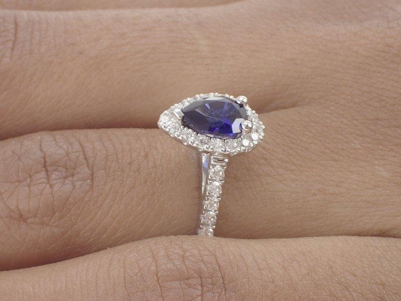 Halo Sapphire Engagement Ring- Blue Sapphire Wedding Ring- Teardrop Sapphire Promise Ring- Blue ... from i.etsystatic.com Metal 14k/18k gold center stone lab sapphire shape round. With the first sapphires discovered in a small deposit in kashmir in the year 1880, sapphires have only grown exponentially in popularity. However, sapphires also come in every color imaginable, except red. Estate ring with a tear drop style setting features a pear shaped sapphire and diamond ring. Pear shaped engagement rings mimic the shape of a dewdrop or teardrop, creating beautiful jewelry pieces that incorporate natural shapes and themes. Browse pear engagement rings featuring blue sapphire, morganite, ruby, or other stones. Brides adore this gemstone for their bright, deep color. Sapphire rings has the beautiful collection of natural sapphire engagement and wedding rings in the us along with stunning colors blue, pink, yellow.